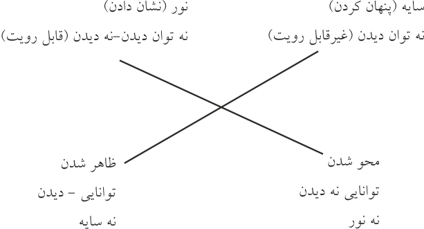 نور نه تنها موضوع حسي است، بلكه همانطور كه گفته شد عامل نشان دادن است. پس دو نقش اساسي دارد: نقش نحوي در روايت و موضوع ادراك. تابش نور هم تحريك كندده ميشود و هم تسهيل كننده. گاهي قدرت ديد را بيشتر ميكند گاهي كمتر. به عبارتي آستانه حساسيت بيننده را تغيير ميدهد.