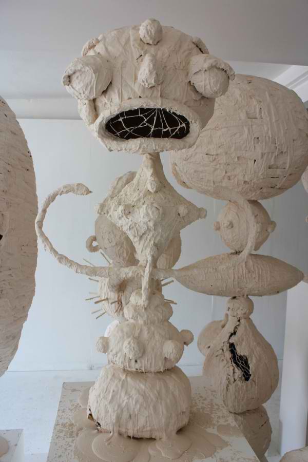کارد: مدت زمان زیادی طول کشید تا بتوانم پی به این موضوع ببرم و تصمیم به برپایی این نمایشگاه بگیرم و در نهایت "جاذبههای شگفت انگیز پارک مخروبه" را برپا کردم. کمی استعاره دارد. وقتی که در حال ویرایش بعضی از آثار هستم، زمانی ایجاد میشود تا با تیم مجموعه گالری صحبت کنم و درباره نوع نگاهم به آنها توضیح دهم. آنها را وادار به فکر میکنم که چطور پارکی تنها رها شده است و ما این اجازه را به آن دادیم که تخریب شود. من در واقع به شکل کارتونگونه آن علاقه دارم: بزرگ، دوست داشتنی، گرد و مهربان. ایده مجاورت این دو در کنار یکدیگر، مخروبه و شکل کارتونگونه آن، من از کلمه همنشینی بدم میآید. همنشینی بین چیزی که دوست داری و چیزی که تلاش میکنی آن را تحقق ببخشی. گاهی باید تمام تلاشت را بکنی تا چهرهات همیشه خندان بهنظر برسد اما نمیشود، من فلزات را جذاب میکنم و با چکش به آنها میکوبم تا فرم دلخواهم را بگیرد، شما میتوانید آثار را در دل این فلزات ذاب نگاه کنید، این چیزی است که مرا هیجان زده میکند. همه ما آن را ار کودکی به خاطر داریم: چیزی شیرین و زیبا، همراه شدن با چیزی شیطانی و نابهنجار برای دیدن و درک شیرینی آن.